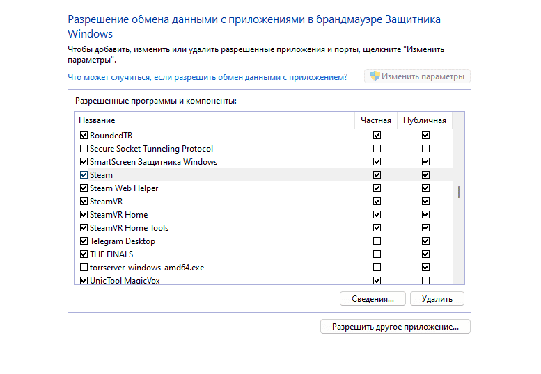 - Убедитесь, что для Steam отмечены оба пункта: "Частная" и "Общая".