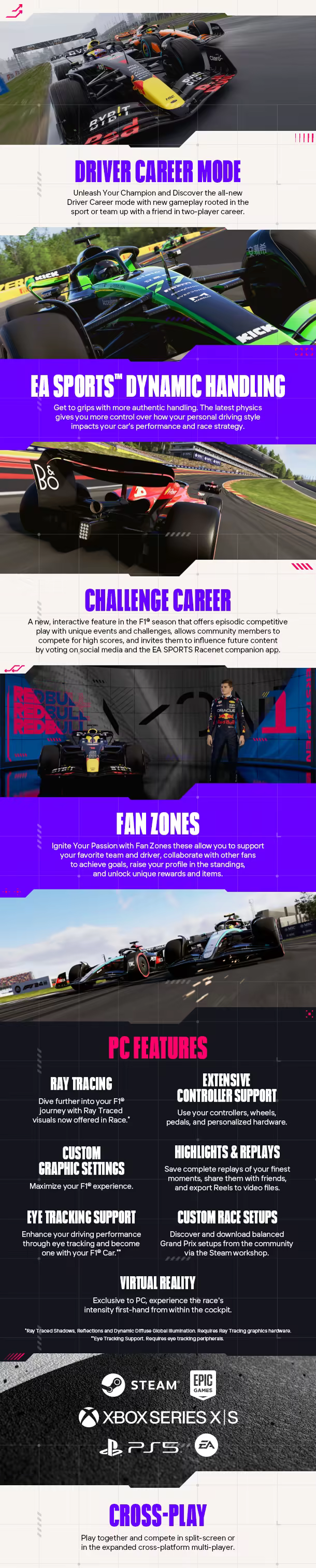 Попадите в 20-ку с EA SPORTS™ F1® 24, официальной видеоигрой чемпионата FIA Formula One World Championship™ 2024. Высвободите свой чемпионский дух в погоне за исторической карьерой F1®, получившей обновление впервые с 2016 года. Станьте величайшим пилотом, слейтесь с болидом в единое целое благодаря новой системе динамического управления EA SPORTS Dynamic Handling. Подпитывайте свою увлечённость, гоняя за любимые команды и пилотов. Покажите, на что способны, в новых режимах и соревнованиях.