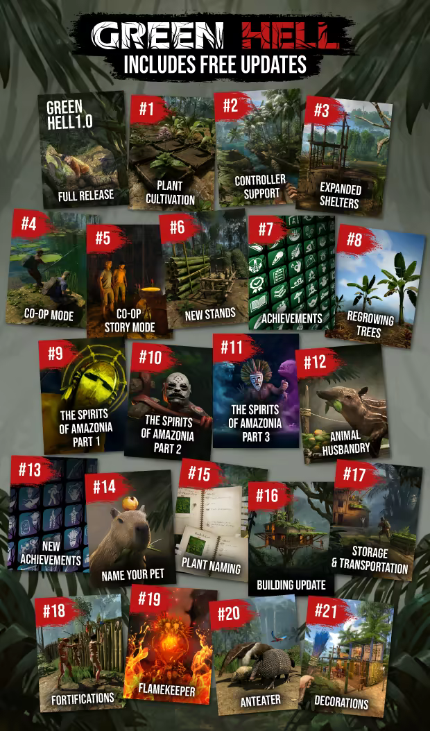 Погрузитесь в бесплатный приквел «Духи Амазонии» длиной более 20 часов. Узнайте, какие события послужили отправной точкой для сюжета Green Hell, и раскройте тайну джунглей.