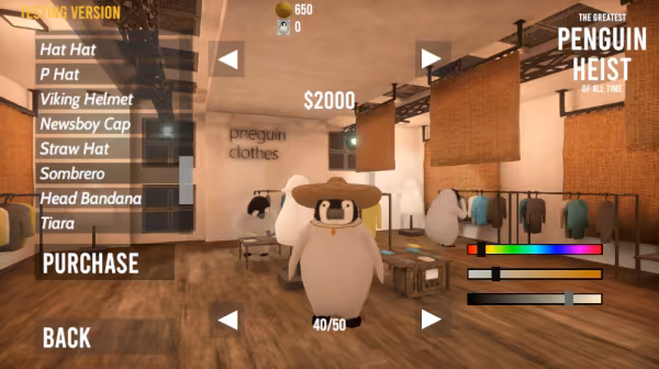Being inspired by old school stealth and heist games along with modern physics platformers, Penguin Heist aims to breathe new life into the genre with a modern physics engine along with multiplayer. You pick your mission, your loadout, and you set out on your mission. Use your tools, weapons, and wit to infiltrate, steal, and exfiltrate as well as you can. Unlock new weapons and items by completing quests and exploring the maps, and get the sickest penguin drip by spending your hard earned money in the clothing store.