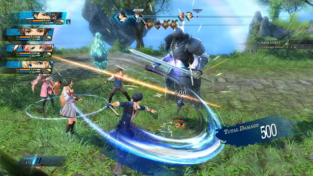 EX Chains can be activated by fulfilling specific conditions during command battles. Once these conditions have been met, using a craft or normal attack against a stunned enemy will automatically activate an EX Chain! This allows party members with SCLM activated to launch a simultaneous attack that will also impact nearby enemies, dealing massive damage.