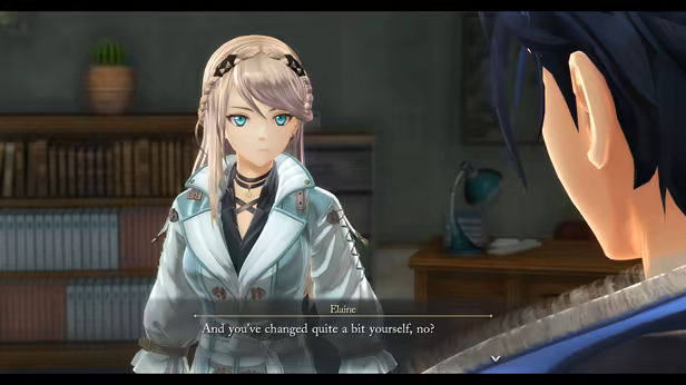 An A-rank bracer affiliated with the Calvard branch of the Bracer Guild. She is occasionally referred to by the moniker 'Beauty's Blade.' Due to her dignified beauty and masterful skill with a sword, Elaine tends to catch the eye of the media more often than not. Unfortunately, this also leads to talent agencies offering her contracts for modeling and acting—she always declines. Outside of being the poster girl for the Bracer Guild, Elaine has no present interest in joining the world of entertainment. During her high school years, she enjoyed a brief and fleeting romance with Van before he suddenly vanished without so much as a word. It was only recently, after seven years, that the two were able to reunite. Although their lingering feelings for each other have left their current relationship a bit tense, their time fighting Almata together was able to strengthen their bond once more. Some time after the events involving Almata and the Oct-Geneses, Elaine received word that the Central Intelligence Department's elite Gamma Squad had been brutally murdered by an unknown assailant, and that a 'crimson' monster was spotted at the scene of the crime...